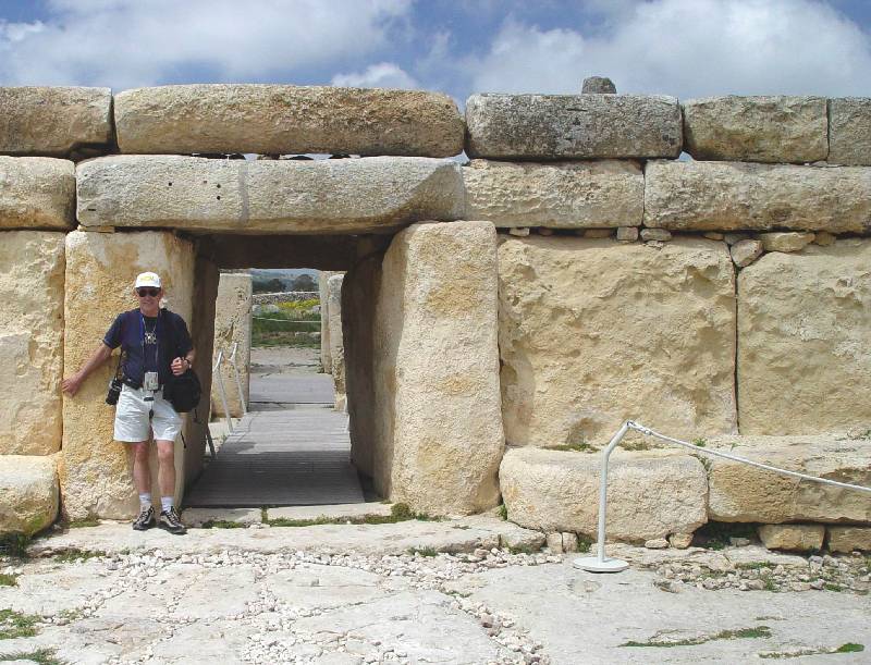 Hagar Qim bejárata előtt állok. (Málta, sz. önkioldóval)
