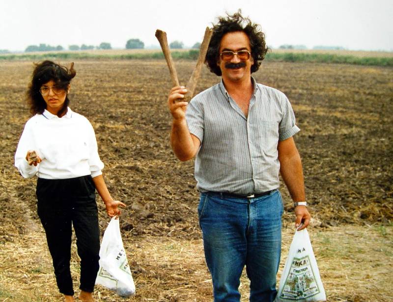 Görög barátaim ismerkednek a kéthalmi pusztával. Maria Ciprusról, Basil Serefoglou Athénból érkezett a magyar Alföldre. (Kéthalom, 1987, sz)