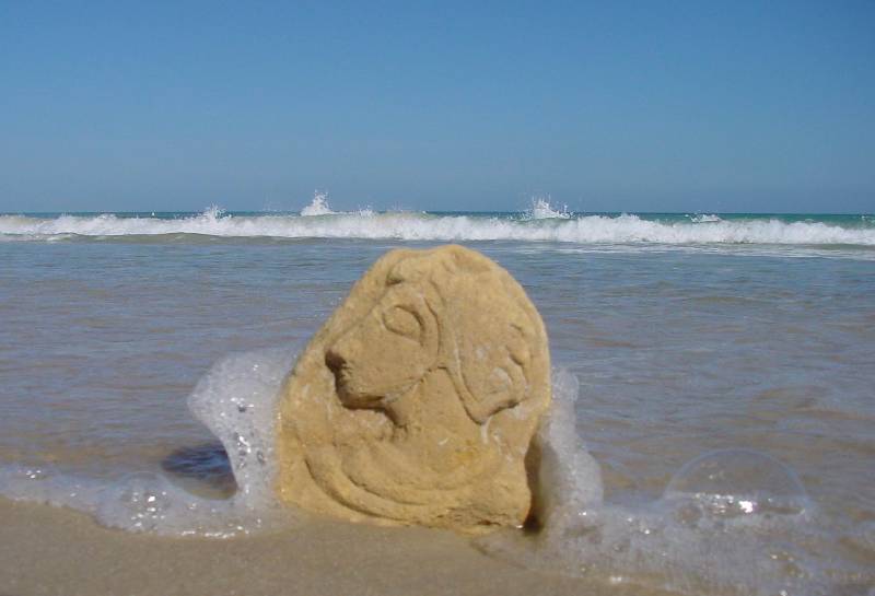 Az eltemetett múltat reprezentálja a tengerparton felállított, Égei arcvonásokat mutató kis sztélé, amelyet a berberektől vásároltam a sivatagban (Tunézia, Tozeur, szt)