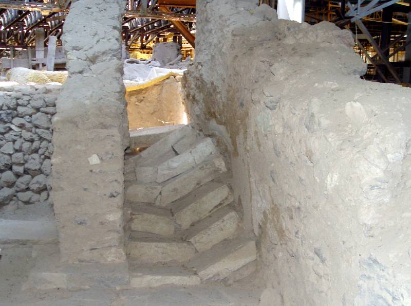 A földrengés erejét bizonyítja ez a kettétört lépcsőház Akrotiriben (Szantorini, sz)