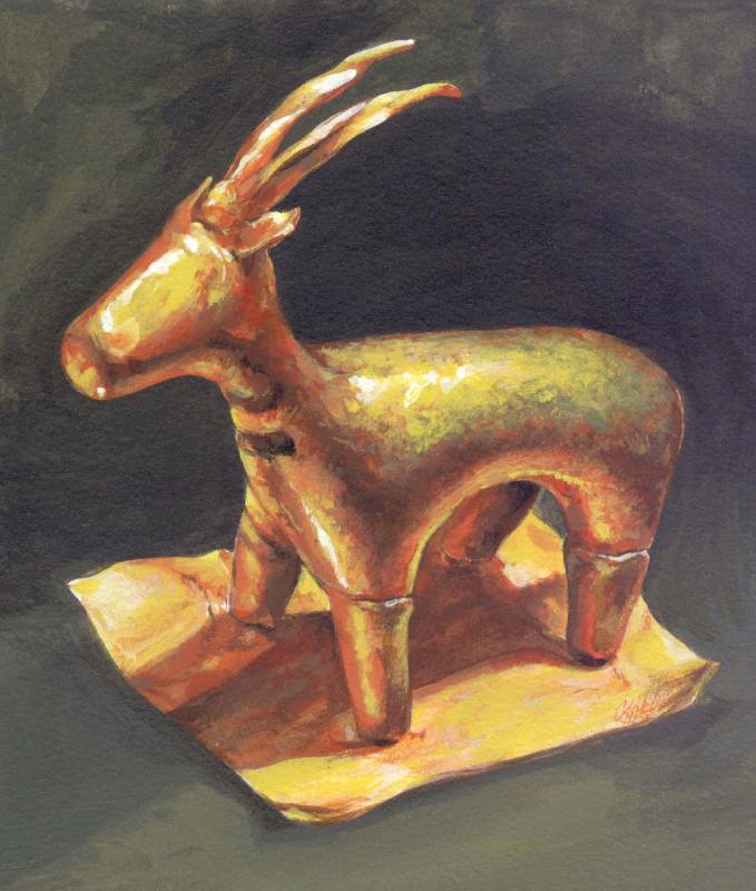 Az Akrotiriben előkerült színarany kecske a firai múzeum legértékesebb