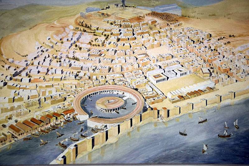 A mesterien kiépített karthágói kikötőt az ókorban sokan megcsodálták.  Elől volt a tenger