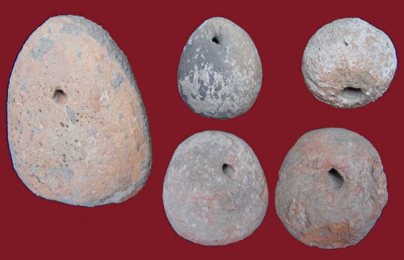 A különböző alakú és méretű orsógombok és nehezékek agyagból készültek
