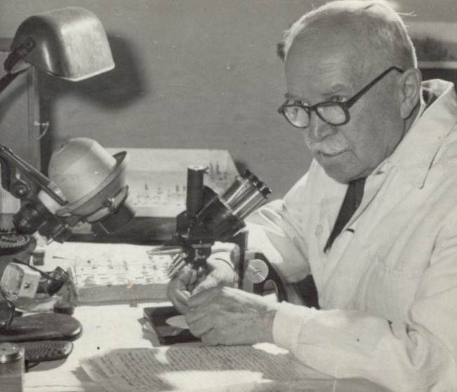 Móczár Miklós tudós rovart határoz meg (dr. Móczár László felvétele)